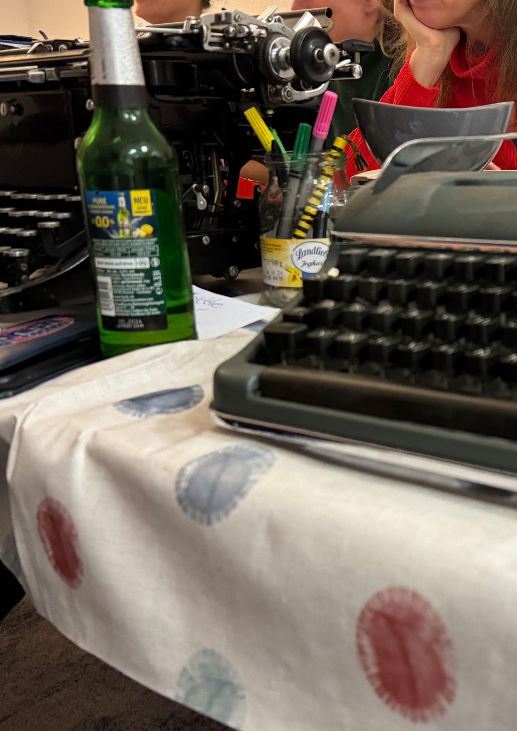 Falls ihr eigene Schreibmaschinen mitbringen wollt, gern. Und falls ihr welche Spenden wollt, gern. Im Moment haben wir rund zehn funktionstüchtige.