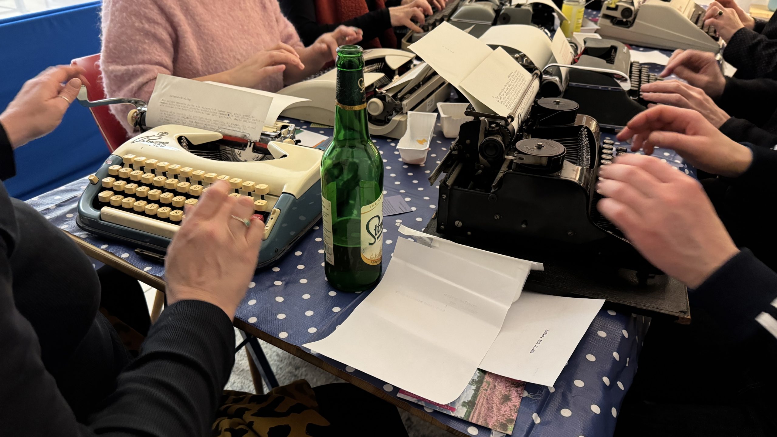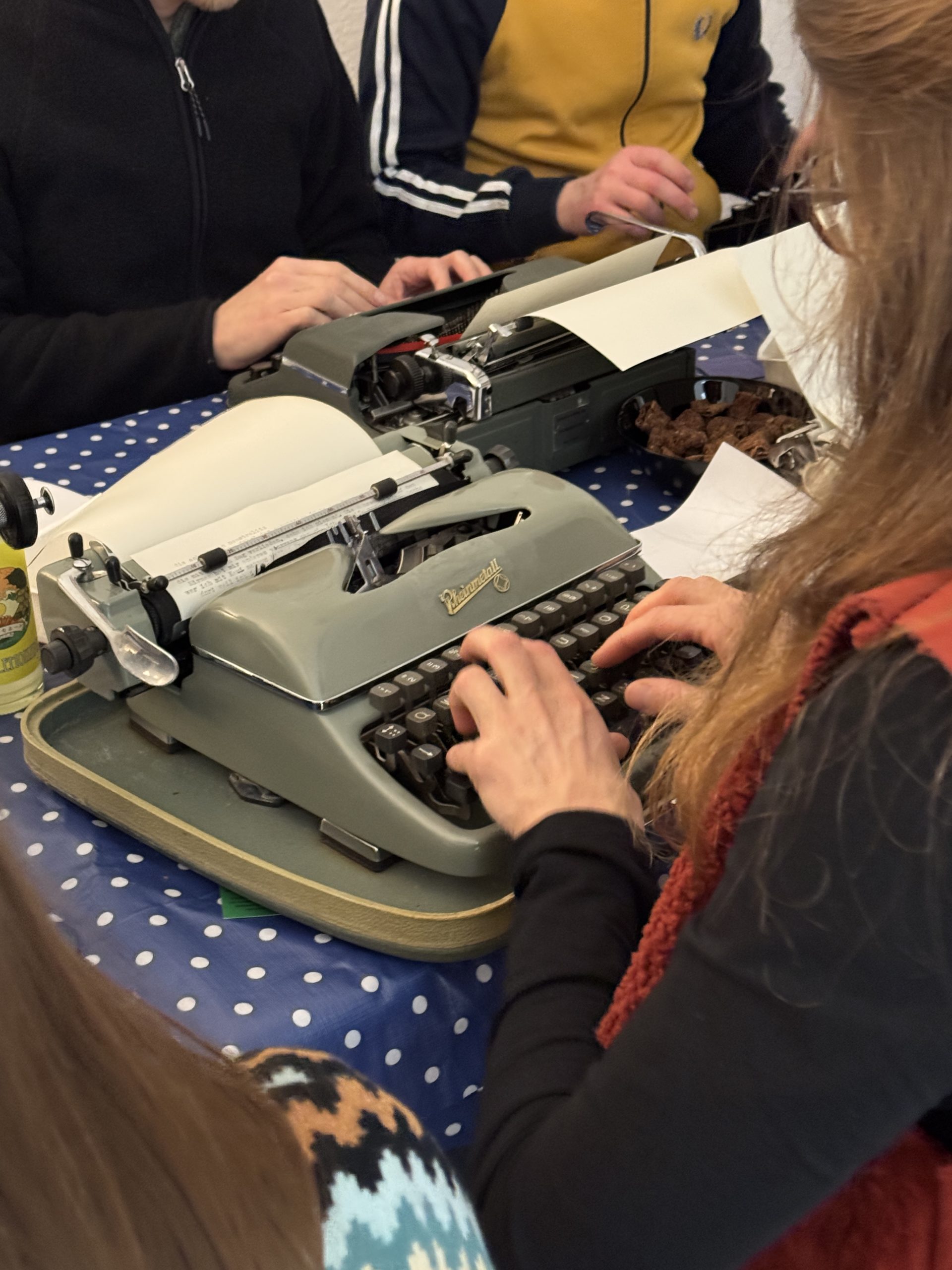 Falls ihr eigene Schreibmaschinen mitbringen wollt, gern. Und falls ihr welche Spenden wollt, gern. Im Moment haben wir rund zwölf funktionstüchtige.
