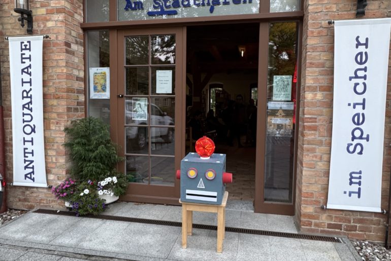 Er öffnete die Augen ganz. Der Tisch war nicht mehr da. Stattdessen: eine Art… Werkstatt? Eine Mischung aus Atelier und Archiv. Hölzerne Druckstöcke lehnten an den Wänden. Eine Metallpresse. An der Decke hingen 37 Zettel. Alle leer.